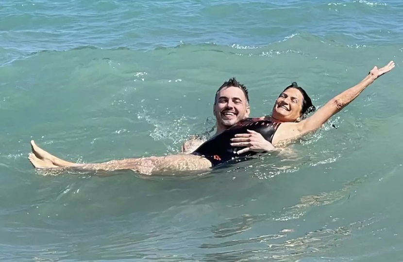 Η Άλκηστις Πρωτοψάλτη μοιράστηκε μάλιστα στον λογαριασμό της στο Instagram, μια φωτογραφία τους, στην οποία ο Μιχάλης Χατζηγιάννης φαίνεται να κρατάει αγκαλιά την αγαπημένη ερμηνεύτρια μέσα στα κύματα.