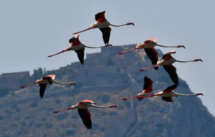 Τα φοινικόπτερα, όπως λέγονται, ξεκίνησαν το ταξίδι της Φθινοπωρινής μετανάστευσης των πτηνών και μετακινούνται προς την Αφρική και την Αραβική χερσόνησο.