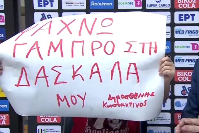 Προξενιό στη δασκάλα του αποφάσισε να κάνει ένα μικρό αγόρι από την Κεφαλονιά, ο Δημοσθένης, με αφορμή την παρουσία του στις εξέδρες του γηπέδου για τον αγώνα του Προμηθέα με τον Ολυμπιακό στην Πάτρα.