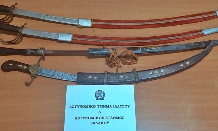 Χειροπέδες σε έναν 63χρονο πέρασαν αστυνομικοί στη Ρόδο, ο οποίος εντοπίστηκε να έχει στην κατοχή του αδιανόητα μεγάλο αριθμό από σπαθιά, όπλα, τόξα και πολλά άλλα.