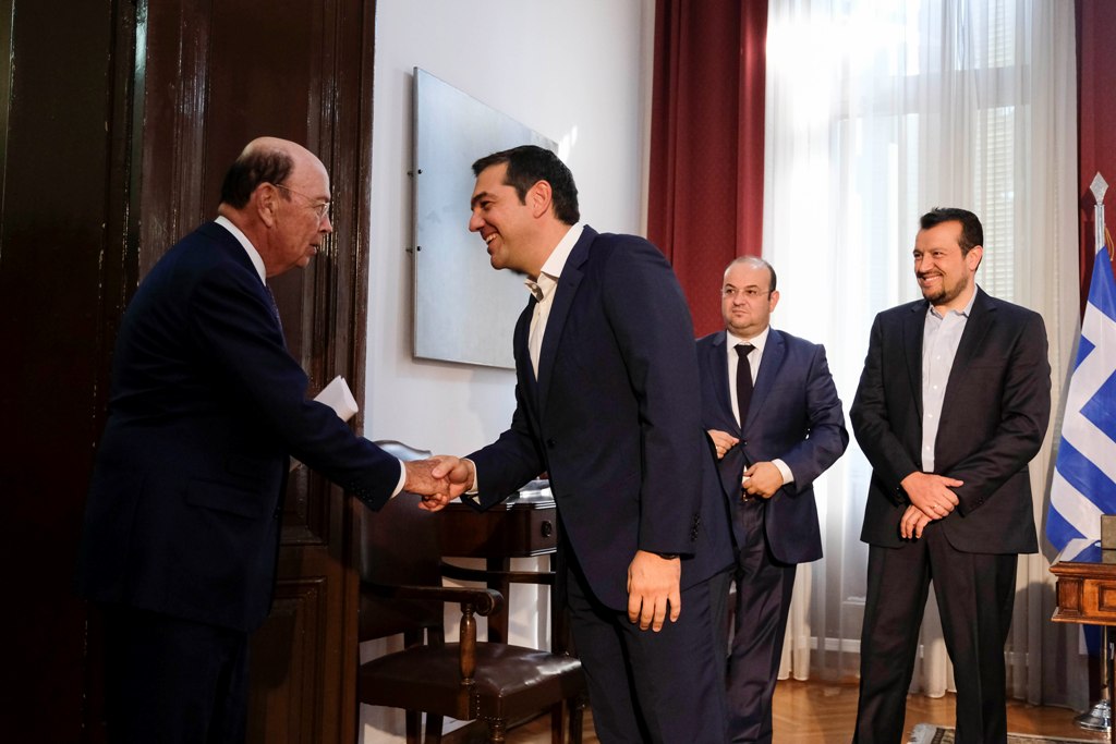 Η Ελλάδα αφήνει πίσω την κρίση και πορεύεται σε ένα περιβάλλον με περισσότερη ανάπτυξη και ασφάλεια για την περιοχή, επισήμανε ο πρωθυπουργός Αλέξης Τσίπρας, ενώ ο Αμερικανός υπουργός Εμπορίου Γουίλμπουρ Ρος, τόνισε ότι οι ΗΠΑ στηρίζουν τη ΔΕΘ, την Ελλάδα και την οικονομία της, στη διάρκεια του διαλόγου που είχαν ενώπιον των τηλεοπτικών συνεργείων, κατά τη συνάντησή τους στο Πρωθυπουργικό Γραφείο στη Θεσσαλονίκη.