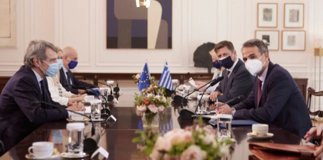 Ο Πρωθυπουργός Κυριάκος Μητσοτάκης συναντήθηκε, στο Μέγαρο Μαξίμου, με τον Πρόεδρο του Ευρωπαϊκού Κοινοβουλίου David Sassoli.