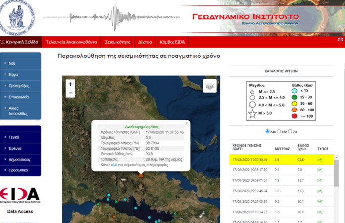 Σεισμός μεγέθους 3,5 βαθμών της κλίμακας Ρίχτερ σημειώθηκε το μεσημέρι της Δευτέρας στη Λαμία.