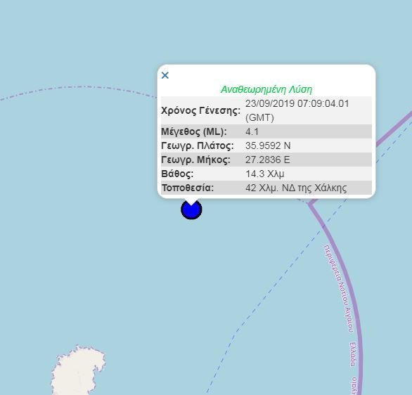 Σύμφωνα με το Γεωδυναμικό Ινστιτούτο, η σεισμική δόνηση σημειώθηκε 42 χιλιόμετρα νοτιοδυτικά της Χάλκης.