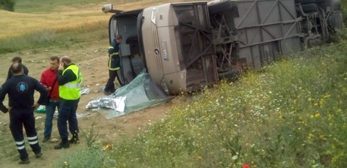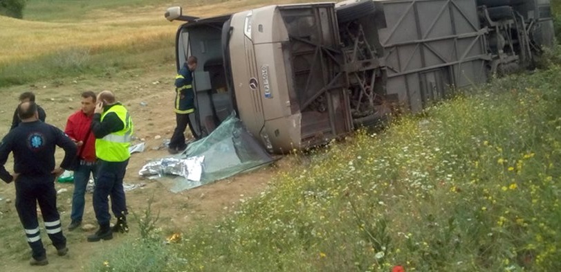 Το λεωφορείο, σύμφωνα με τον ΣΚΑΪ, βρισκόταν καθ’ οδόν για ημερήσια εκδρομή, όταν ένα φορτηγό έκλεισε το δρόμο στο λεωφορείο, με αποτέλεσμα αυτό να βγει από την πορεία του και να ανατραπεί. Ο οδηγός της νταλίκας δεν παρέμεινε στο σημείο αλλά διέφυγε και αναζητείται από τις αρχές. Το λεωφορείο σύρθηκε πάνω στην άσφαλτο για αρκετά μέτρα πριν τελικά σταματήσει.