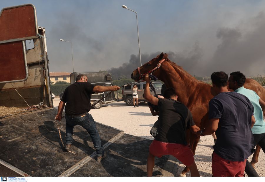 «Η κατάσταση είναι τραγική. Δεν υπάρχει πυροσβεστικό, τίποτα. Καίγονται τα πάντα. Στον Άγιο Παντελεήμονα που έχει φτάσει η φωτιά δεν έχουμε βοήθεια. Βγάλαμε τα άλογα έξω από τον Ιππικό Όμιλο μόνοι μας, δεν έχουμε βοήθεια».