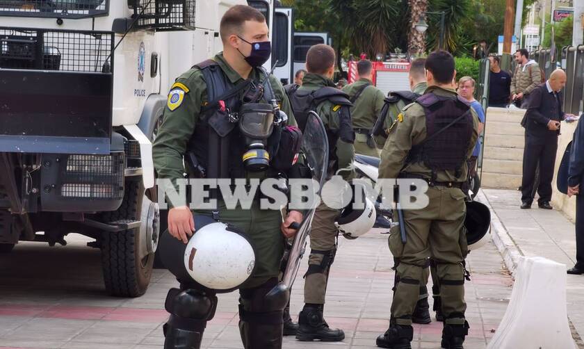 Στο σημείο βρίσκονται ισχυρές αστυνομικές δυνάμεις οι οποίες είναι παραταγμένες κατα μήκος της Λεωφόρου Ειρήνης.
