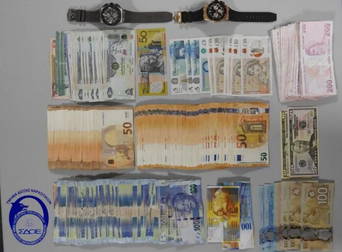 Σε έρευνα που διενεργήθηκε στην κατοικία του συλληφθέντα, βρέθηκαν και κατασχέθηκαν χρηματικά ποσά σε χαρτονομίσματα προερχόμενα από διάφορες χώρες, μεταξύ των οποίων ευρώ, δολάρια ΗΠΑ, δολάρια Καναδά , δολάρια Αυστραλίας, ελβετικά φράγκα, λίρες Τουρκίας, Dirhams Ηνωμένων Αραβικών Εμιράτων και Rand Νοτίου Αφρικής.
