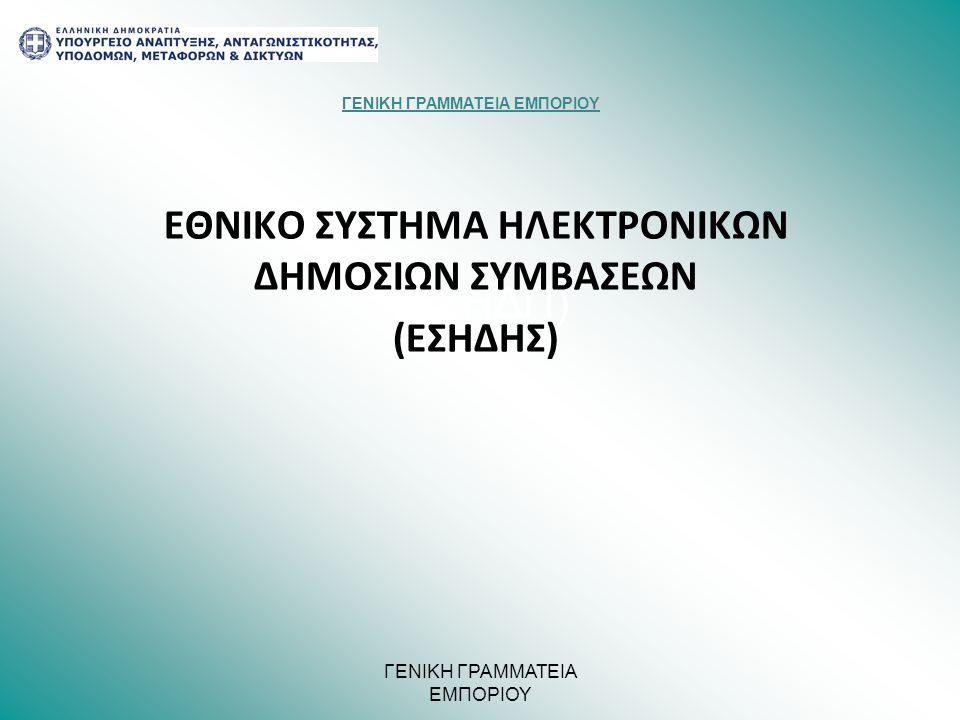 Την Πέμπτη 4 Αυγούστου και ώρα από 15:00 έως την Παρασκευή 5 Αυγούστου και ώρα 10:00, τα συστήματα του Εθνικού Συστήματος Ηλεκτρονικών Δημοσίων Συμβάσεων (ΕΣΗΔΗΣ) και του Κεντρικού Ηλεκτρονικού Μητρώου Δημοσίων Συμβάσεων (ΚΗΜΔΗΣ) θα τεθούν εκτός λειτουργίας για λόγους συντήρησης της ηλεκτρολογικής υποδομής του κτιρίου της γενικής γραμματείας Εμπορίου και Προστασίας Καταναλωτή.