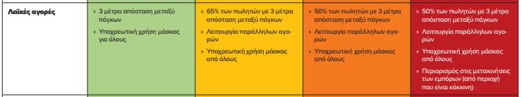 Στο επίπεδο 2 θα πρέπει να είναι το 65% των πωλητών, με 3 μέτρα απόσταση μεταξύ πάγκων και λειτουργία παράλληλων αγορών.