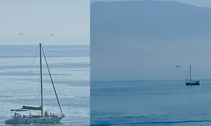 Αναλύοντας τις δύο φωτογραφίες της ανάρτησης γράφει: «Στην πρώτη φωτογραφία το ιστιοπλοϊκό που διακρίνεται στο βάθος φαίνεται να βρίσκεται στον ουρανό με πορεία αντίθετη του ιστιοπλοϊκού που φαίνεται σε πρώτο πλάνο (είναι το ίδιο). Ανάλογο φαινόμενο παρουσιάζεται στη δεύτερη φωτογραφία ευκρινέστερα παρότι η φωτογραφία είναι τραβηγμένη σε ανοιχτό πλάνο όπου στο βάθος διακρίνονται και τα βουνά της Αλβανίας».