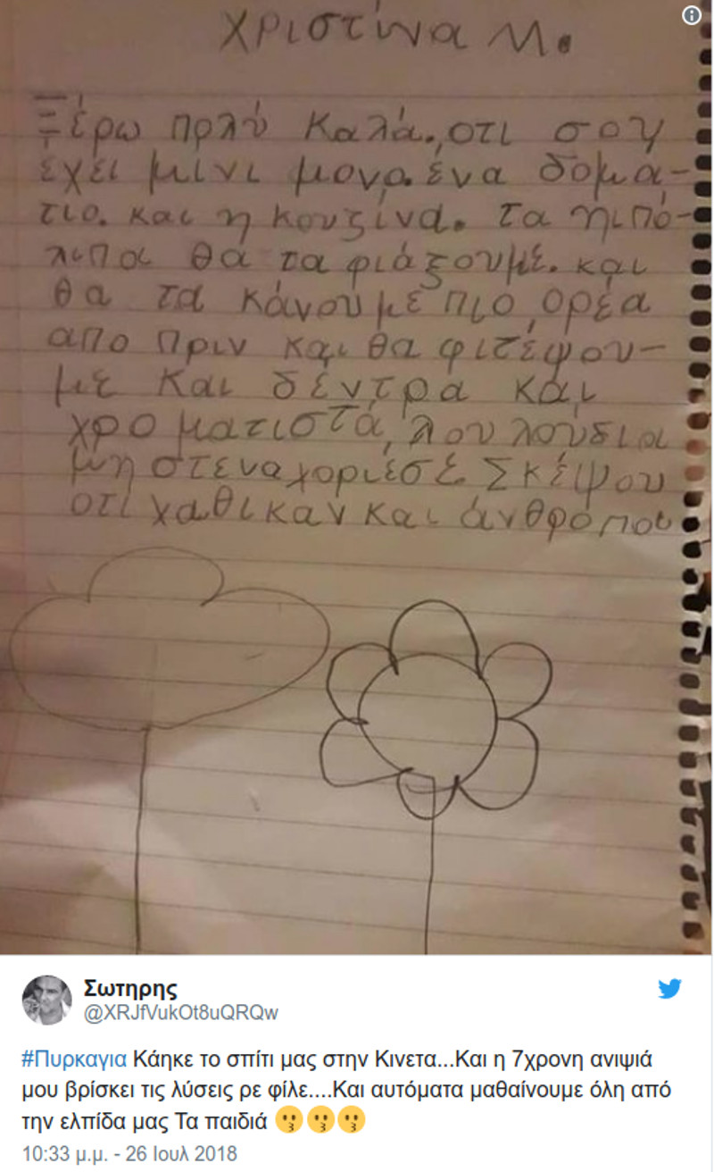 Γράφει ο Σωτήρης στο twitter, ανεβάζοντας και το γράμμα της ανηψιάς του: