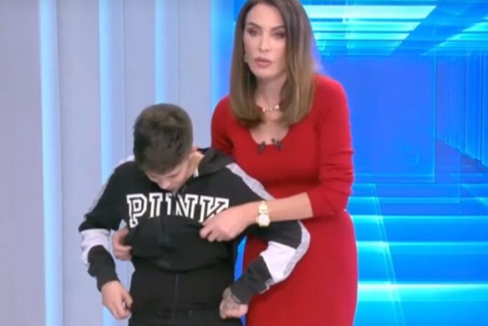 Αυτή τη φορά όμως, η παρουσιάστρια Τατιάνα Στεφανίδου, σήκωσε όρθια την 23χρονη για να δείξει τον σωματότυπό της, ενώ της σήκωσε την μπλούζα για να δείξει την κοιλιά της.