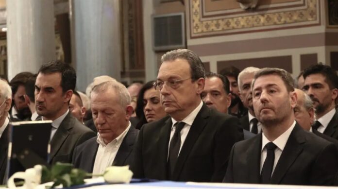 Τα στελέχη ΣΥΡΙZΑ και ΠΑΣΟΚ βρέθηκαν έξω από το Α’ νεκροταφείο μετά το τέλος της κηδείας του πρώην πρωθυπουργού και αντάλλαξαν θερμές χειραψίες και ευχές. Κάποιοι μάλιστα βρήκαν και την ευκαιρία να συνομιλήσουν λίγο παραπάνω για τα θέμα της επικαιρότητας.