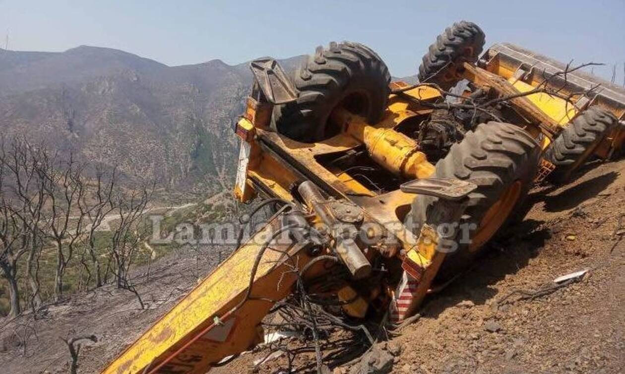 Ένα τραγικό συμβάν έγινε γύρω στις 11:00΄ το πρωί στην Ερατεινή Φωκίδας με έναν χειριστή να πέφτει σε γκρεμό την ώρα που έκανε έργο στην ευρύτερη περιοχή της πυρκαγιάς. Σύμφωνα με μαρτυρία κατοίκου της περιοχής στο LamiaReport την ώρα που το τεράστιο μηχάνημα κινούταν από το νεκροταφείο της Ερατεινής προς το χωριό Μηλιά, κοντά στη θέση “Αμυγδαλιά” άγνωστο πως βρέθηκε στο γκρεμό. Η μπουλντόζα μετά την εκτροπή τούμπαρε και σταμάτησε όπως το βλέπετε στις φωτογραφίες του LamiaReport στη μέση της πλαγιάς, μετά από τριάντα μέτρα περίπου.