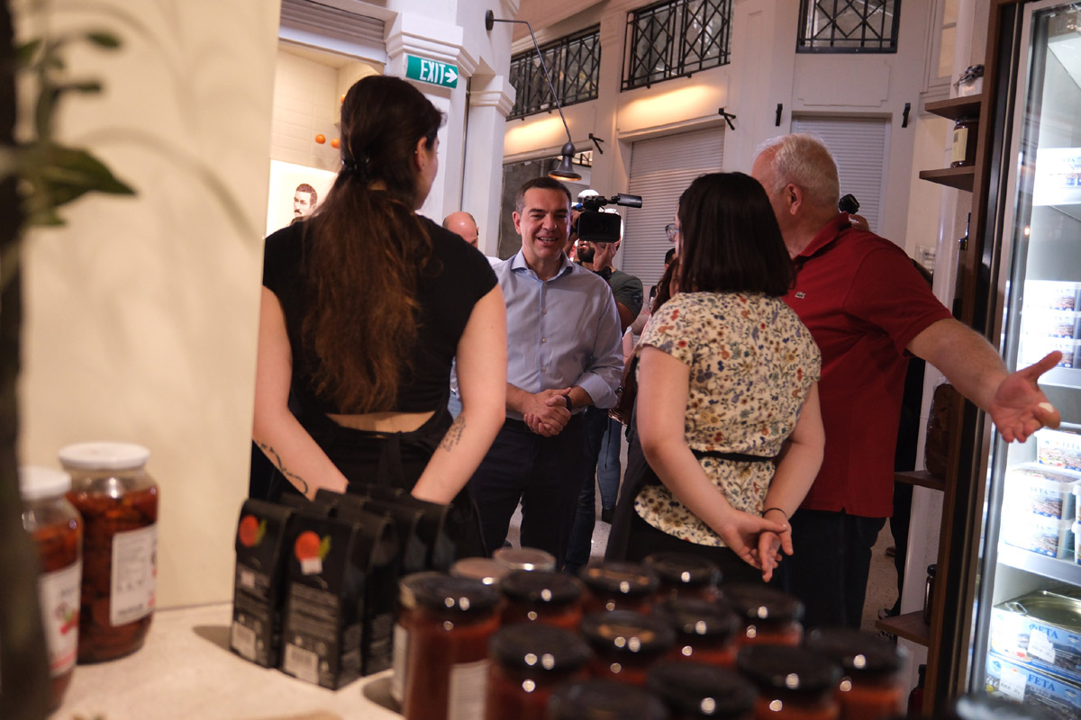 Ο Αλέξης Τσίπρας έφτασε στον εξώστη της Αγοράς Μοδιάνο, λίγο μετά τις 12:15 και χαιρέτισε και ευχαρίστησε του δημοσιογράφους λέγοντας ότι κάποιες στιγμές η προεκλογική εκστρατεία ήταν εξοντωτική για όλους.
