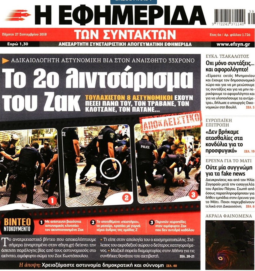 Δεν λιντσαρίστηκε μία αλλά δύο φορές ο Ζακ Κωστόπουλος – τη δεύτερη μάλιστα όχι από «αγανακτισμένους πολίτες», αλλά από τους αστυνομικούς που πήγαν να τον συλλάβουν.