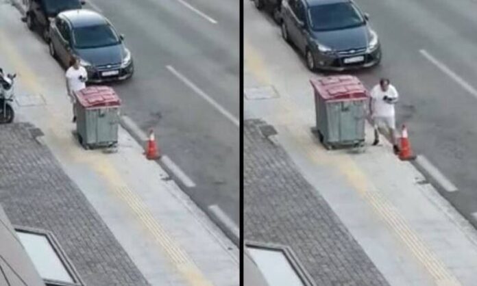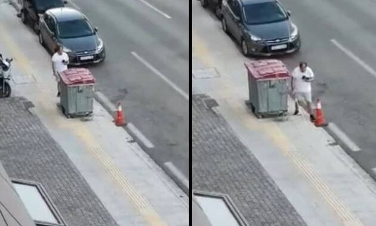 Μάλιστα, ο κάδος αυτός έχει τοποθετηθεί εκεί στην θέση του πεζοδρομίου που έχει αφαιρεθεί, με αποτέλεσμα ο δρόμος των ανθρώπων να κάνει από δεξιά τον γύρω του κάδου.
