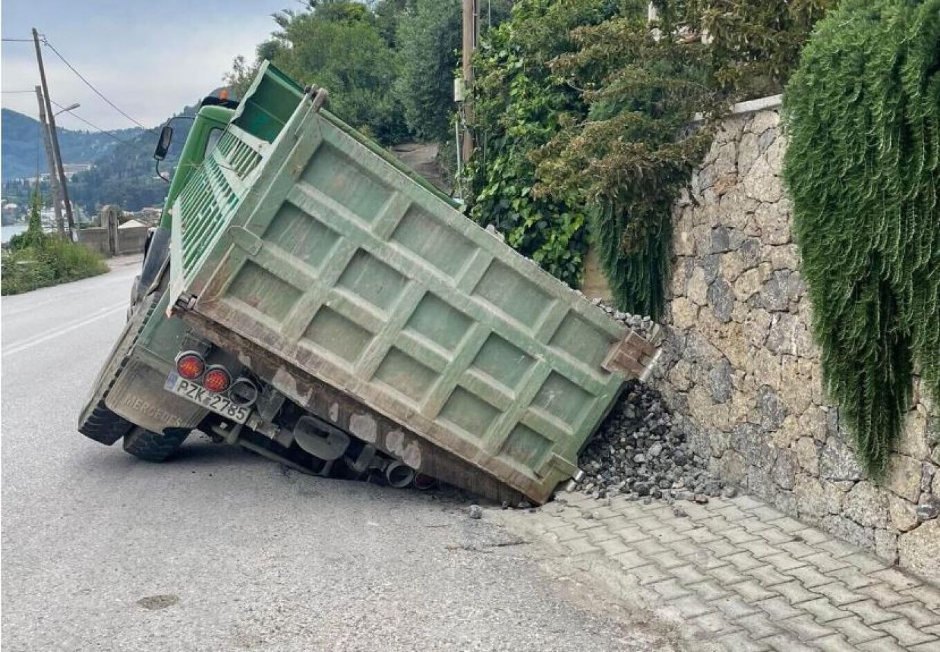 Ένα μεγάλο τμήμα του οδικού δικτύου στην περιοχή Πέραμα στην Κέρκυρα, υποχώρησε το απόγευμα της Δευτέρας (8/5) με αποτέλεσμα να «καταπιεί» σχεδόν το φορτηγό που ήταν σταθμευμένο στο σημείο. Δείτε φωτογραφίες από το σημείο: