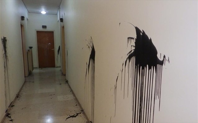Όπως μεταδίδει ο ανταποκριτής του ΑΜΠΕ στην πόλη, οι δράστες πέταξαν μαύρη μπογιά στους τoίχους και στις πόρτες διαμερισμάτων που βρίσκονται στην πολυκατοικία, έγραψαν συνθήματα στους τoίχους, ενώ προσπάθησαν να βάλουν φωτιά στην πόρτα όπου στεγάζονται τα γραφεία της Χρυσής Αυγής.