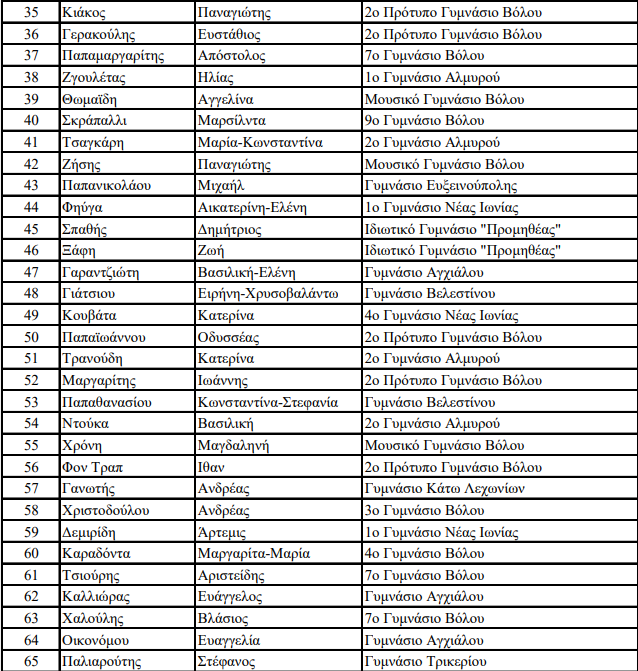 Τα ονόματα των μαθητριών και των μαθητών που διακρίθηκαν αναγράφονται στον πίνακα και επίσης θα αναρτηθούν στην ιστοσελίδα του Παραρτήματος: eme-mag.gr.