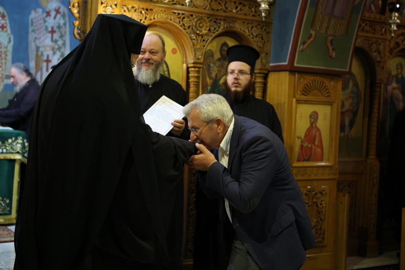 Από την μεριά του, ο Δ/ντής της Σχολής Βυζ. Μουσικής Αρχιμ. Επιφάνιος Οικονόμου, θύμισε την βαριά ιστορία και την μεγάλη παράδοση της Σχολής, που υπηρέτησαν οι αείμνηστοι προκάτοχοί του Μανώλης Χατζημάρκος και Μιχάλης Μελέτης και συνεχίζουν να διακονούν οι σύγχρονοι δάσκαλοι. Μίλησε για το έργο της Σχολής, που είναι η εκμάθηση της Βυζαντινής Μουσικής και της Ψαλτικής τέχνης, η εμπειρική επαφή με την λειτουργική γλώσσα και την υμνολογία της Εκκλησίας, κυρίως, όμως, η διαμόρφωση ορθού λειτουργικού και εκκλησιολογικού ήθους.