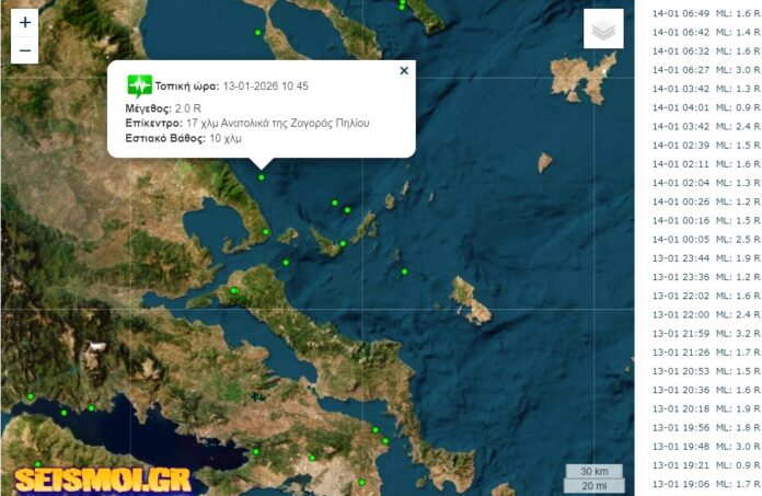 Συγκεκριμένα στις 10.45 χθες καταγράφηκε δόνηση 2,0 βαθμών της κλίμακας Ρίχτερ 17 χλμ. ανατολικά της Ζαγοράς, σε εστιακό βάθος 10 χλμ.
