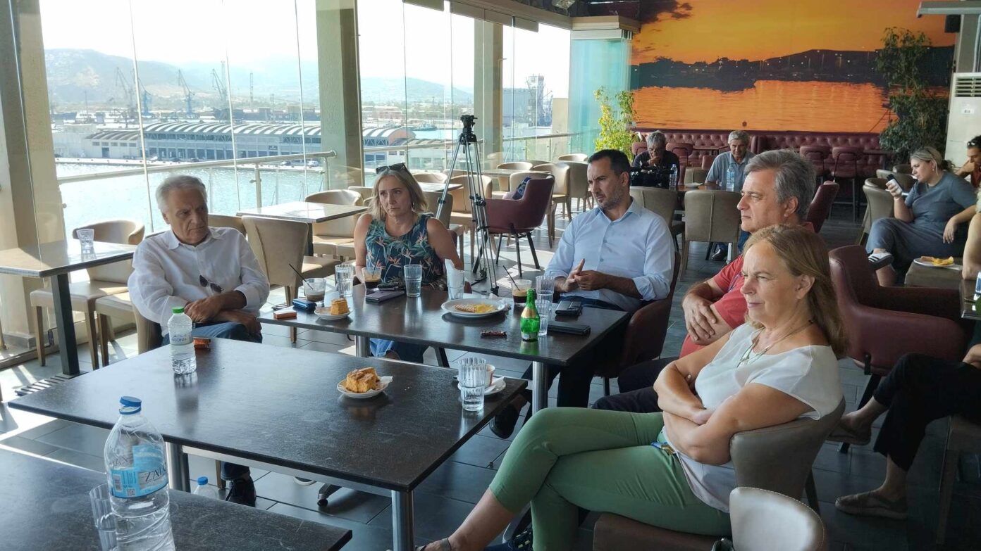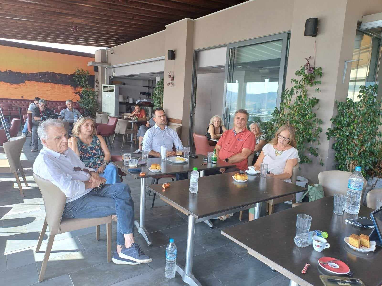 Τέλος πραγματοποίησε συνάντηση με φορείς τις πόλης του Βόλου, με πληττόμενους πολίτες, την Περιβαλλοντική Πρωτοβουλία Μαγνησίας και τον Σύλλογο για την Προστασία του Παγασητικού στην οποία είχε την ευκαιρία να ακούσει τις ανησυχίες τους και τα αιτήματα τους για ένα ολιστικό σχέδιο δράσης με σκοπό την παραγωγική ανασυγκρότηση της περιοχής. Στη συνάντηση συμμετείχαν μεταξύ άλλων η πρώην υφυπουργός Κατερίνα Παπανάτσιου, ο Κώστας Πουλάκης, η αναπληρώτρια συντονίστρια της Νέας Αριστεράς Μαγνησίας Κλεοπάτρα Μπατζούκη και ο καθηγητής Γιώργος Σταμπουλής.