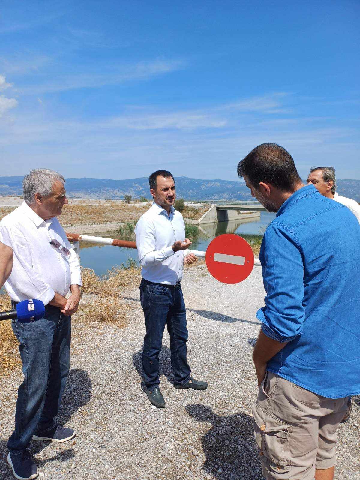 Στη συνέχεια ο Αλέξης Χαρίτσης πραγματοποίησε αυτοψία στον ταμιευτήρα, στο θυρόφραγμα της λίμνης Κάρλα και στον ποταμό Ξηριά όπου ενημερώθηκε για το φαινόμενο και την πρωτόγνωρη κατάσταση που βιώνει η περιοχή από το προσωπικό της Μονάδας Διαχείρισης Προστατευόμενων Περιοχών Θεσσαλίας η οποία ανήκει στον Ο.ΦΥ.ΠΕ.Κ.Α (Οργανισμός Φυσικού Περιβάλλοντος και Κλιματικής Αλλαγής).