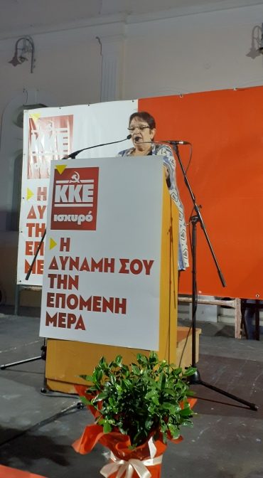 Στην ομιλία της, μεταξύ άλλων, τόνισε πως το ΚΚΕ απευθύνεται στη λαϊκή πλειοψηφία, ακόμη όμως περισσότερο σε εκείνους που εκτιμούν το ρόλο του κόμματος γιατί ξέρουν ότι οι προβλέψεις, εκτιμήσεις και προειδοποιήσεις του, έχουν επιβεβαιωθεί. Απευθύνεται όμως και σε όλους εκείνους που έχουν απογοητευθεί από τα κόμματα που διαδοχικά κυβέρνησαν τη χώρα.