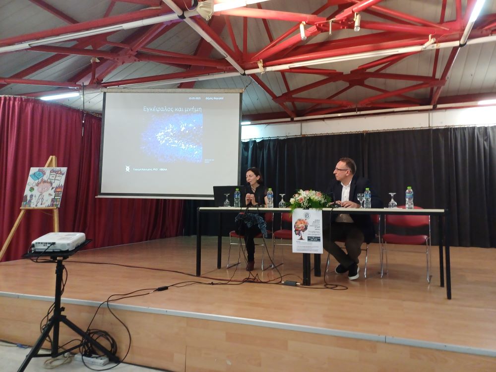 Ακολούθως, έλαβε τον λόγο ο Δρ. Πολίτης Παναγιώτης ερευνητής στο Κέντρο Βασικής Έρευνας στο Ίδρυμα Ιατροβιολογικών Ερευνών της Ακαδημίας Αθηνών παρουσίασε με σαφήνεια το ταξίδι στη δημιουργία του Εγκεφάλου: της πολυπλοκότερης δομής στο γνωστό Σύμπαν. Ανέφερε ότι μία απ’ τις μεγαλύτερες προκλήσεις της επιστήμης είναι η κατανόηση της βιολογικής βάσης της συνείδησης και των νοητικών διεργασιών με τις οποίες αντιλαμβανόμαστε, ενεργούμε, μιλάμε, μαθαίνουμε και θυμόμαστε. Τόνισε ότι η ανάπτυξη του ανθρώπινου εγκεφάλου ξεκινά από τα πρώιμα στάδια της ανάπτυξης ενός εμβρύου και υπογράμμισε ότι υπάρχουν περισσότερες από 1.000 παθήσεις του εγκεφάλου και του νευρικού συστήματος όπως: Κατάθλιψη, νόσος του Alzheimer, νόσος του Parkinson, σχιζοφρένεια κ.ά. Στο εργαστήριό του πραγματοποιούνται πειράματα σχετικά με τη μελέτη της συνεισφοράς ορισμένων γονιδίων στις ασθένειες του εγκεφάλου.