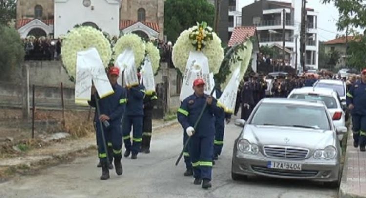 Η νεκρώσιμος ακολουθία έγινε από τον Ιερό Ναό Αγ. Αθανασίου Πλατάνου, όπου παραβρέθηκαν, μεταξύ άλλων ο δήμαρχος Αλμυρού Βαγγέλης Χατζηκυριάκος, ο υποστράτηγος Μάριος Αποστολίδης, συντονιστής του επιχειρήσεων των Πυροσβεστικών Υπηρεσιών Στερεάς Ελλάδας και Θεσσαλίας, εκ μέρους του Αρχηγείου, ο διοικητής των Πυροσβεστικών Υπηρεσιών Θεσσαλίας, αρχιπύραρχος Νικόλαος Μπαλτσής, ο διοικητής των Πυροσβεστικών Υπηρεσιών Μαγνησίας, πύραρχος Νίκος Μητσιογιάννης, ο διοικητής της Π.Υ. Βόλου πύραρχος Γιώργος Βλόντζος και ο προϊστάμενος του Πυροσβεστικού Κλιμακίου Δρυμώνα, πυραγός Παναγιώτης Γκουγκουτούδης, που εκφώνησε τον επικήδειο λόγο.