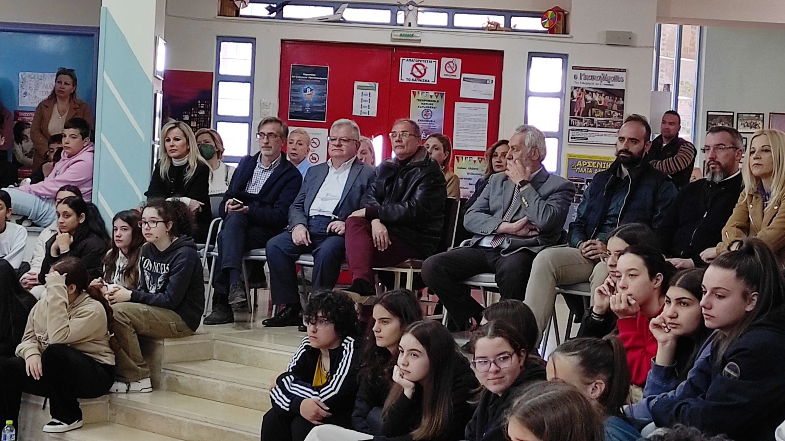 Απονεμήθηκαν τιμητικές πλακέτες στην τέως αντιπεριφερειάρχη Μαγνησίας κ. Δωροθέα Κολυνδρίνη και στον γιατρό κ. Χαράλαμπο Παρίση, δύο ανθρώπους που, όπως αναφέρει το σχολείο, συνέβαλαν στη γνώση, στην εκπαίδευση στην ΚΑΡΠΑ και παραχώρησαν απινιδωτές, από τη Διευθύντρια και τον πρόεδρο και την αντιπρόεδρο του 15μελούς μαθητικού συμβουλίου.