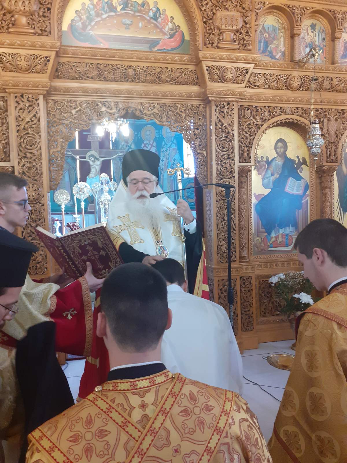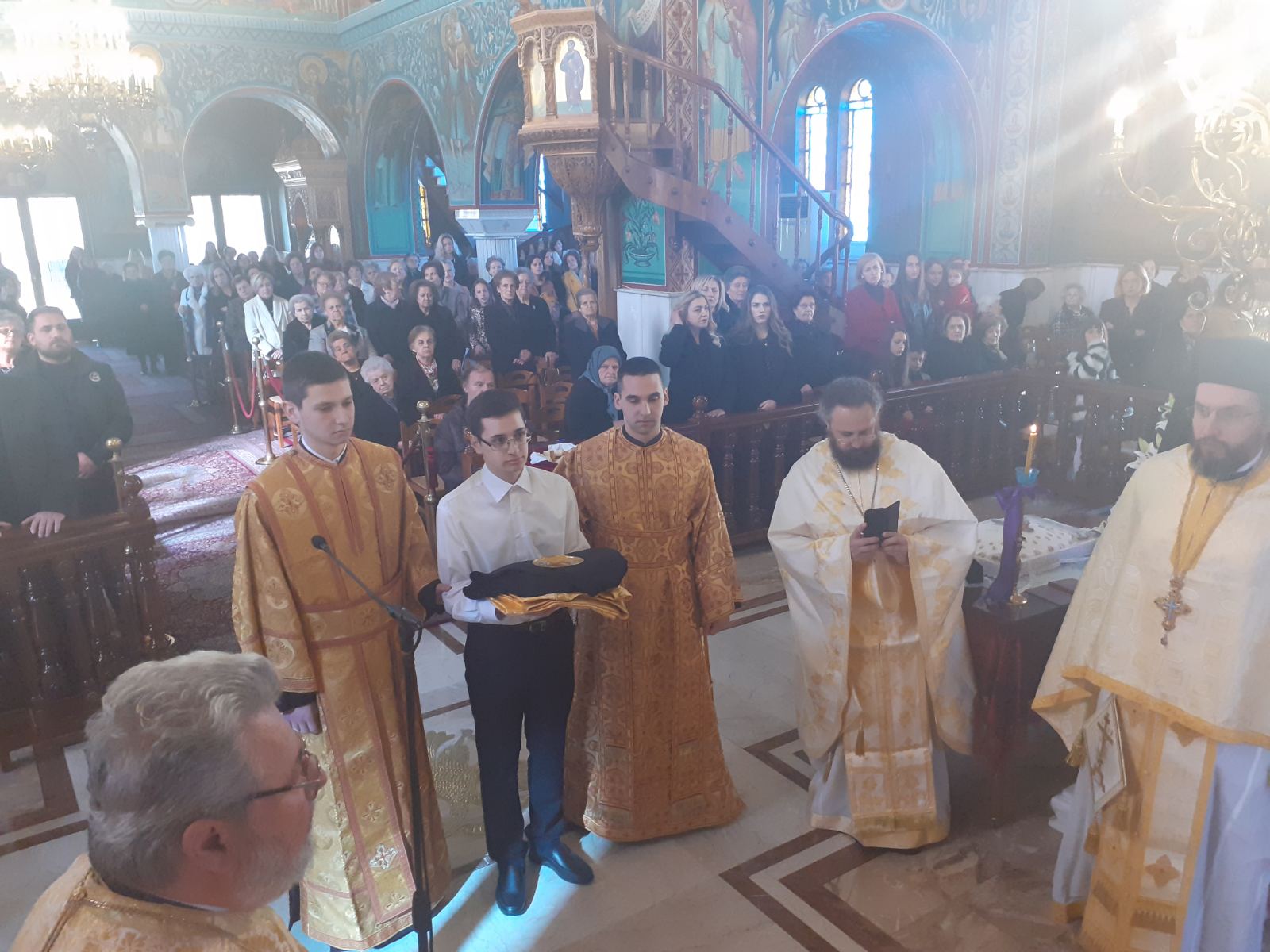 Το πρωί της Κυριακής ο Σεβασμιώτατος παρέστη συμπροσευχόμενος, κατά την Θεία Λειτουργία, στον Ιερό Ναό Αγίου Νικολάου Αλμυρού, στο τέλος της οποίας τέλεσε την χειροθεσία εις Αναγνώστη του δευτεροετούς φοιτητού του Παιδαγωγικού Τμήματος του Πανεπιστημίου Θεσσαλίας Παναγιώτου Κολέτα, κατηχητού του Ναού, στον οποίο επί χρόνια διακονεί συστηματικά.