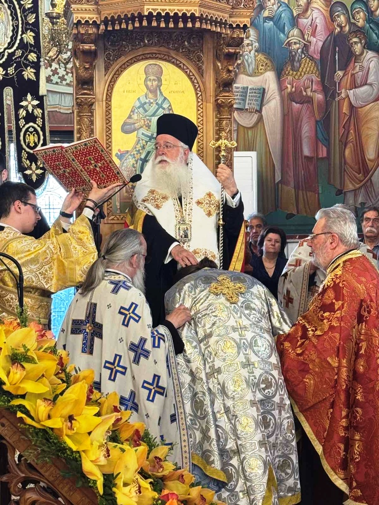 Στο τέλος του Εσπερινού, ο Μητροπολίτης ευχαρίστησε τον Καθηγούμενο για την παρουσία του αλλά και για την πολύτιμη ευλογία της μεταφοράς του Ιερού Λειψάνου, επισημαίνοντας ότι «Η σημερινή ημέρα αποτελεί για όλους μας διπλή ευλογία. Τιμούμε τον Άγιο Νικόλαο, τον προστάτη της ενορίας, αλλά συγχρόνως στεκόμαστε με σεβασμό απέναντι στη μνήμη της γενοκτονίας των Ποντίων. Μια πληγή ακόμη ζωντανή που μας υπενθυμίζει ότι, όποτε διχαστήκαμε, χάσαμε. Όποτε ενωθήκαμε με πίστη, προχωρήσαμε. Είναι καθήκον μας να κρατούμε άσβεστη τη μνήμη των αδερφών μας και να χτίζουμε ενότητα με θεμέλιο την Ορθόδοξη Πίστη και την αγάπη για την πατρίδα μας. Η ενότητα σήμερα είναι ο μεγαλύτερος θησαυρός μας και προϋπόθεση για κάθε εθνική προκοπή. Αν θέλουμε πραγματικά μια ελεύθερη πατρίδα για τα παιδιά μας, πρέπει να μην ξαναζήσουμε ποτέ διχασμούς. Να ευχόμαστε και να προσευχόμαστε να έχουμε σύνεση, σοφία και την ευλογία των Αγίων μας».
