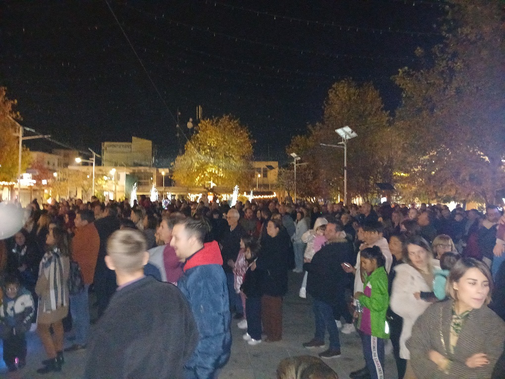 Μικροί και μεγάλοι γέμισαν ασφυκτικά τους χώρους της Κεντρικής Πλατείας, ενώ ο συνωστισμός ήταν μεγάλος ιδιαίτερα μπροστά στη μαγική ολοζώντανη Φάτνη, μοναδική στην Ελλάδα, που ζωντανεύει με ολογράμματα μπροστά στα μάτια των θεατών την πιο όμορφη ιστορία του κόσμου, την ιστορία της γέννησης του Θεανθρώπου. Η φάτνη αυτή, μια σύνθεση αριστοτεχνικά σκηνοθετημένη από τον Πασχάλη Μάντη, θα ξεδιπλώνει κάθε ημέρα, για ένα μήνα, μπροστά στα μάτια των επισκεπτών το συναισθηματικό βάθος της Γέννησης του Χριστού, προσκαλώντας τους να ζήσουν μια μοναδική και μαγική εμπειρία. Επίσης οι μικροί δημότες , ξεχύθηκαν χαρούμενοι στα σπιτάκια του Αη-Βασίλη, στα οποία μπορούν να στέλνουν τα γράμματα με τις επιθυμίες τους προς τον αγαπημένο τους Άγιο κάθε ημέρα.