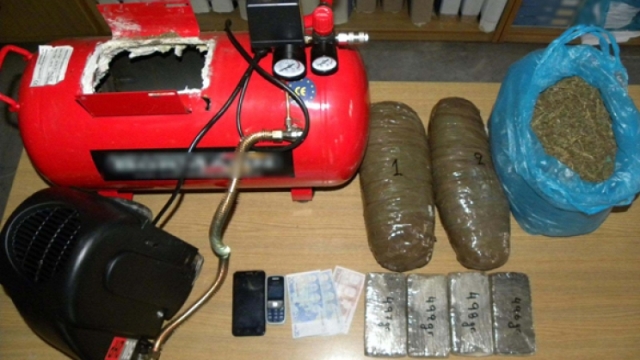 Στο εσωτερικό του αεροσυμπιεστή βρέθηκαν επιμελώς κρυμμένες τέσσερις συσκευασίες με ηρωίνη, συνολικού βάρους 1.983 γραμμαρίων και τρεις συσκευασίες με κάνναβη, συνολικού βάρους 3.774 γραμμαρίων, σύμφωνα με όσα είχαν ανακοινωθεί τότε από την αστυνομία.