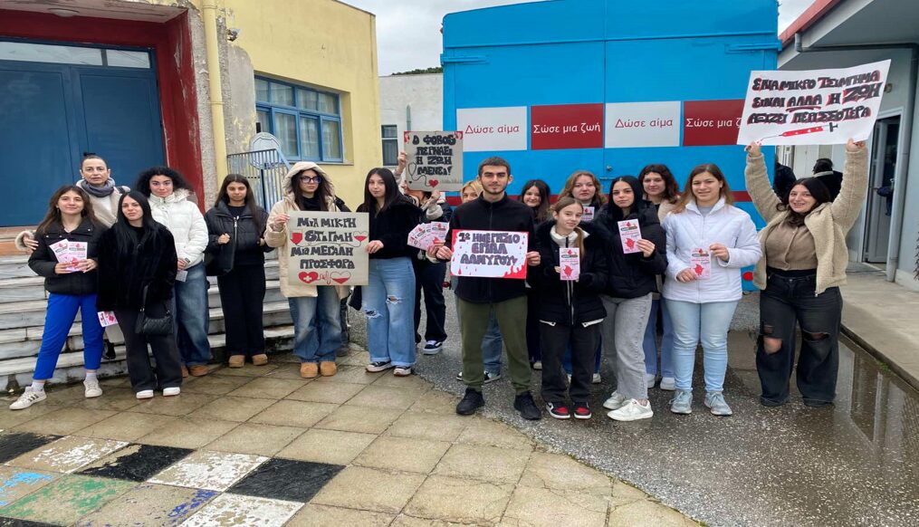 Μαθητές στο 1ο ΕΠΑΛ Αλμυρού ύψωσαν πλακάτ για την προώθηση της εθελοντικής αιμοδοσίας