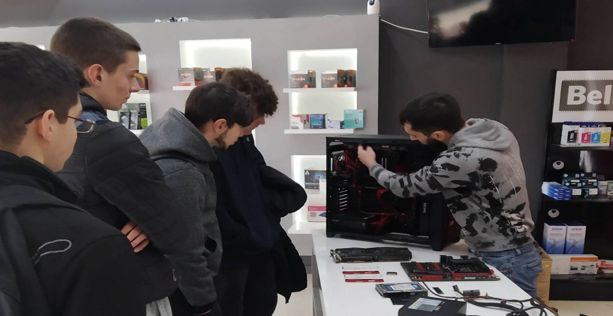 Ο κ. Λασκαρίδης υποδέχθηκε θερμά τους μαθητές και τους ξενάγησε στον κόσμο της νέας τεχνολογίας των υπολογιστών και των κινητών τηλεφώνων. Μίλησε για τις σπουδές του και το αντικείμενο της δουλειάς του που είναι η πώληση υπολογιστών, περιφερειακών και αναλωσίμων καθώς και η επισκευή και σύνθεση μονάδων υπολογιστών και κινητών τηλεφώνων. Επιπλέον, έδειξε στους μαθητές την λειτουργία συστήματος υδρόψυξης. Το τμήμα της Β τάξης Πληροφορικής συνόδευσαν οι καθηγητές Βαλαμούτης Κων/νος ΠΕ86 και Βαλκανιώτης Δημήτριος ΠΕ86.