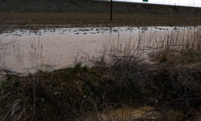 Το σημείο που χωραφιού είχε πλημμυρίσει από τον κυκλώνα Ιανό και πλέον με τη βροχή μετατρέπεται σε βάλτο.