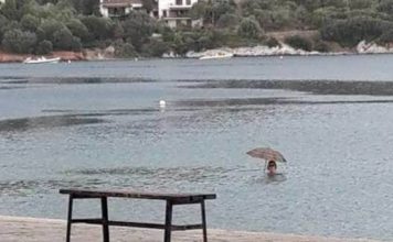 Αμαλιάπολη Αλμυρού: Λουόμενη μπήκε να κάνει μπάνιο στη θάλασσα με την ομπρέλα εν ώρα καταιγίδας!