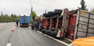 Ανατράπηκε νταλίκα στις Μικροθήβες