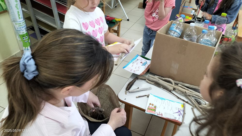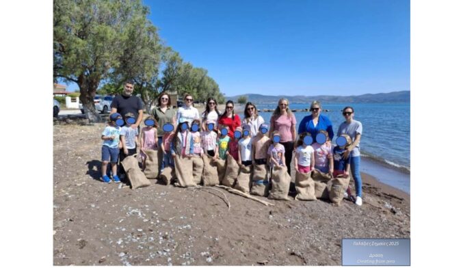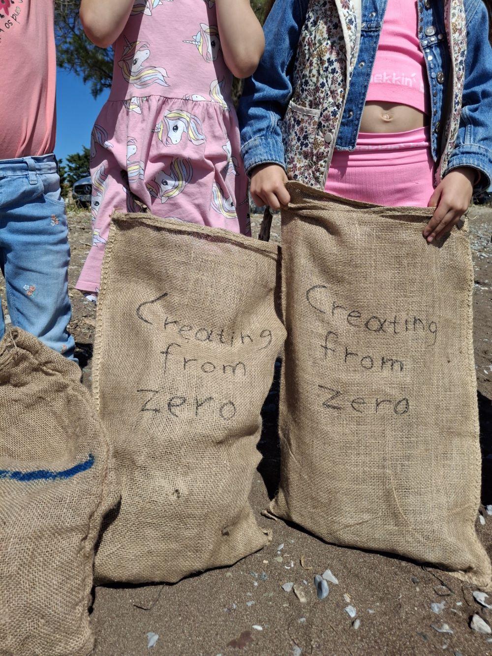 Τα παιδιά πραγματοποίησαν καθαρισμό της παραλίας, έκαναν διαλογή των ανακυκλώσιμων υλικών που περισυνέλεξαν και δημιούργησαν κατασκευές από τα υλικά αυτά.
