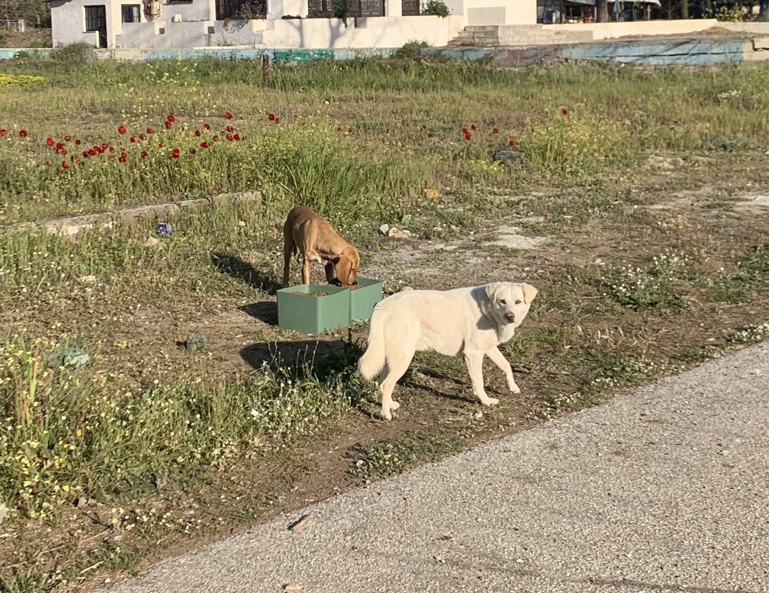 Πρόσθεσε ακόμη πως τα αδέσποτα σιτίζονται καθημερινά από τον Δήμο ο οποίος διαθέτει υπάλληλο επιφορτισμένο αποκλειστικά με την παροχή τροφής και νερού σε αυτά (παρά το γεγονός πως οι ταϊστρες-ποτίστρες έχουν κλαπεί τρεις φορές από αγνώστους) καθώς επίσης στα ελάφια και τα παγώνια του δάσους Κουρί.