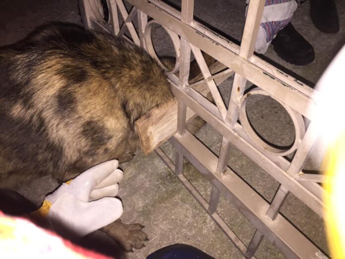 Για τον απεγκλωβισμό σκύλου, το κεφάλι του οποίου σφήνωσε σε κάγκελα σπιτιού, κλήθηκε σήμερα το απόγευμα το Πυροσβεστικό Κλιμάκιο Δρυμώνα.