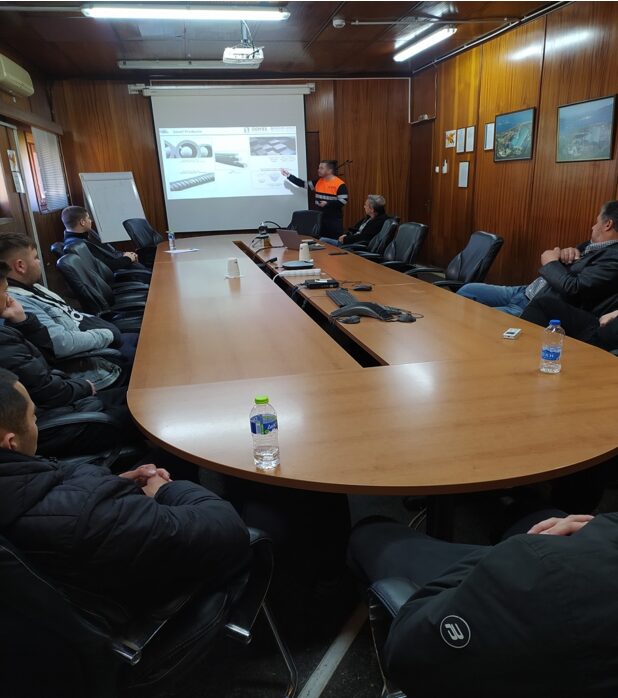 Τους μαθητές και τους συνοδούς εκπαιδευτικούς υποδέχθηκε ο κ. Ευάγγελος Τσάμης Τεχνικός Ασφαλείας της εταιρίας, ο οποίος παρουσίασε την εταιρία και τα προϊόντα της. Η Sovel αποτελεί θυγατρική εταιρία της Σιδενόρ Βιομηχανική Χάλυβα. Πρόκειται για ένα βιομηχανικό συγκρότημα που βρίσκεται στον Αλμυρό Μαγνησίας και περιλαμβάνει χαλυβουργείο, ελασματουργείο, μονάδα παραγωγής πλεγμάτων, καθώς και βοηθητικές μονάδες. Η παρουσίαση εμπλουτίστηκε με βίντεο από τμήματα της εταιρίας που για λόγους ασφαλείας οι μαθητές δεν μπορούν να δουν δια ζώσης.