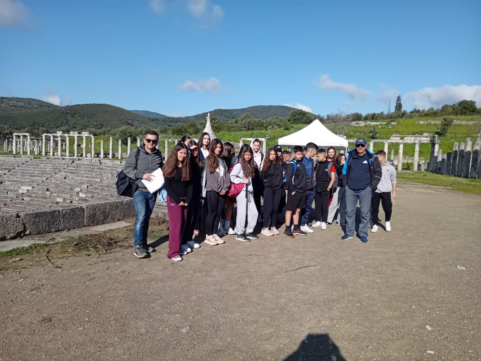 Το τριήμερο από 3 έως 5 Απριλίου 2025 μαθητές/τριες από τις τρεις τάξεις του Γυμνασίου – Λ. Τ. Ευξεινούπολης πραγματοποίησαν εκπαιδευτική εκδρομή στην αρχαία Μεσσήνη και την Καλαμάτα. Την πρώτη μέρα μετά την άφιξή τους στη μεσσηνιακή πρωτεύουσα οι μαθητές και οι συνοδοί εκπαιδευτικοί ανέβηκαν στο κάστρο της πόλης και απόλαυσαν τη θέα της από ψηλά. Στη συνέχεια επισκέφθηκαν το αρχαιολογικό μουσείο, όπου είχαν την τύχη να δουν την περιοδική έκθεση «Πρίγκιπες της Πύλου. Θησαυροί της Εποχής του Χαλκού από τη Μεσσηνία» και να θαυμάσουν ορισμένα από τα περίπου 1.400 μοναδικά και πολύτιμα κτερίσματα – μεταξύ αυτών μια μικρή σφραγίδα γνωστή ως Αχάτης Μάχης της Πύλου – που συνόδευαν την ταφή ενός νεαρού άνδρα, ηλικίας 30-35 ετών, σε λακκοειδή τάφο περί το 1450 π.Χ. Ο τάφος του “Γρύπα Πολεμιστή” ανακαλύφθηκε το 2015 ασύλητος. Συνεχίζοντας τη βόλτα τους στην πόλη προσκύνησαν την εικόνα της Υπαπαντής του Χριστού στον ομώνυμο μητροπολιτικό ιερό ναό και φωτογραφήθηκαν μπροστά από τον ιερό ναό των Αγίων Αποστόλων στην καρδιά του ιστορικού κέντρου της Καλαμάτας, όπου σύμφωνα με την παράδοση κηρύχθηκε η έναρξη του επαναστατικού αγώνα στη Μεσσηνία στις 23 Μαρτίου 1821. Οι προσωπογραφίες των τεσσάρων πρωταγωνιστών (Νικηταρά, Κολοκοτρώνη, Παπαφλέσσα και Μαυρομιχάλη, οι οποίοι εισήλθαν εκείνη την ημέρα ως ελευθερωτές στην πόλη της Καλαμάτας) φιλοτεχνήθηκαν σε μορφή τοιχογραφήματος (γκράφιτι) και κοσμούν το ιστορικό κέντρο της πόλης. Το βράδυ μαθητές και εκπαιδευτικοί περπάτησαν στην κεντρική πλατεία και γεύτηκαν τοπικά εδέσματα.