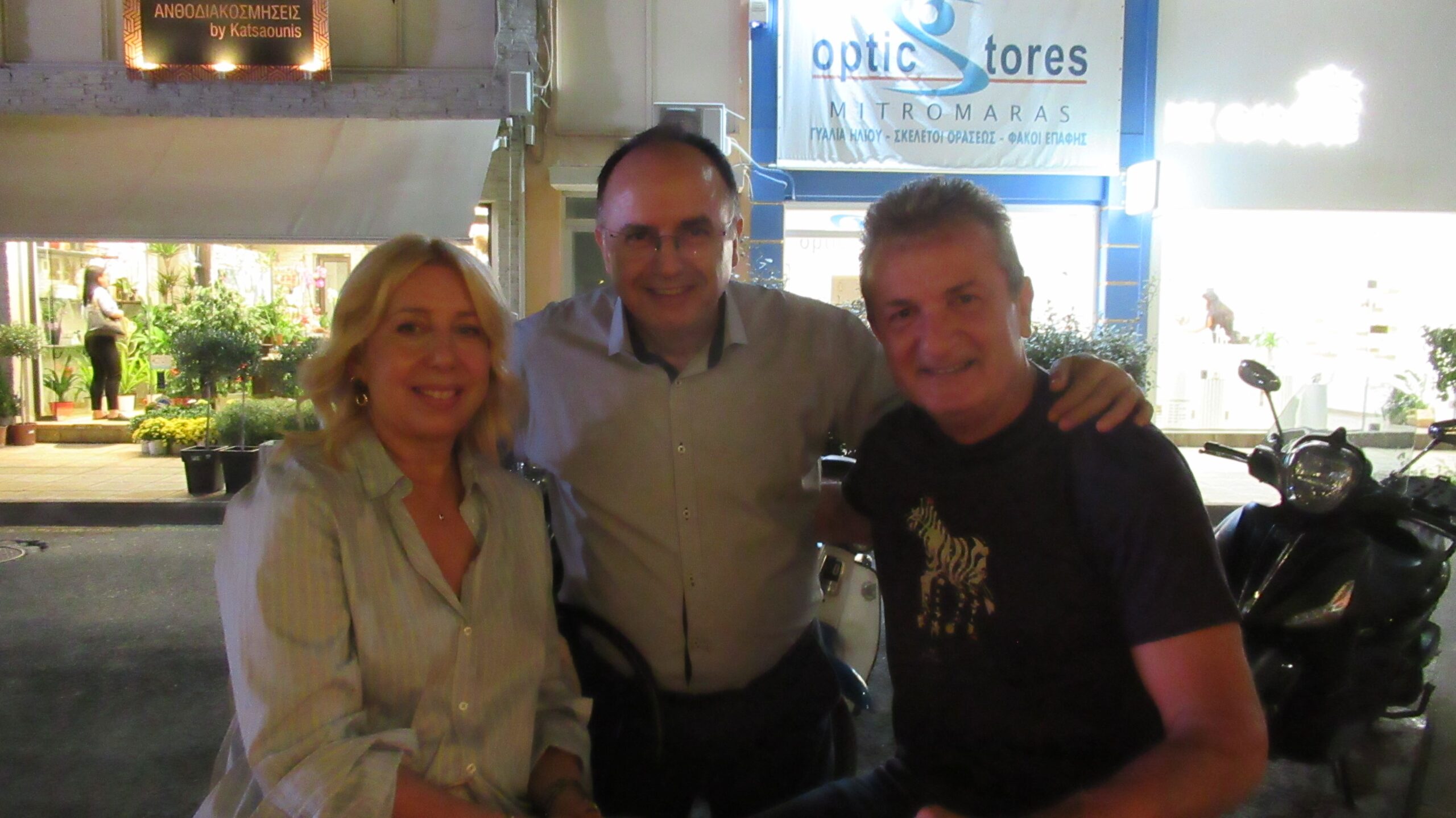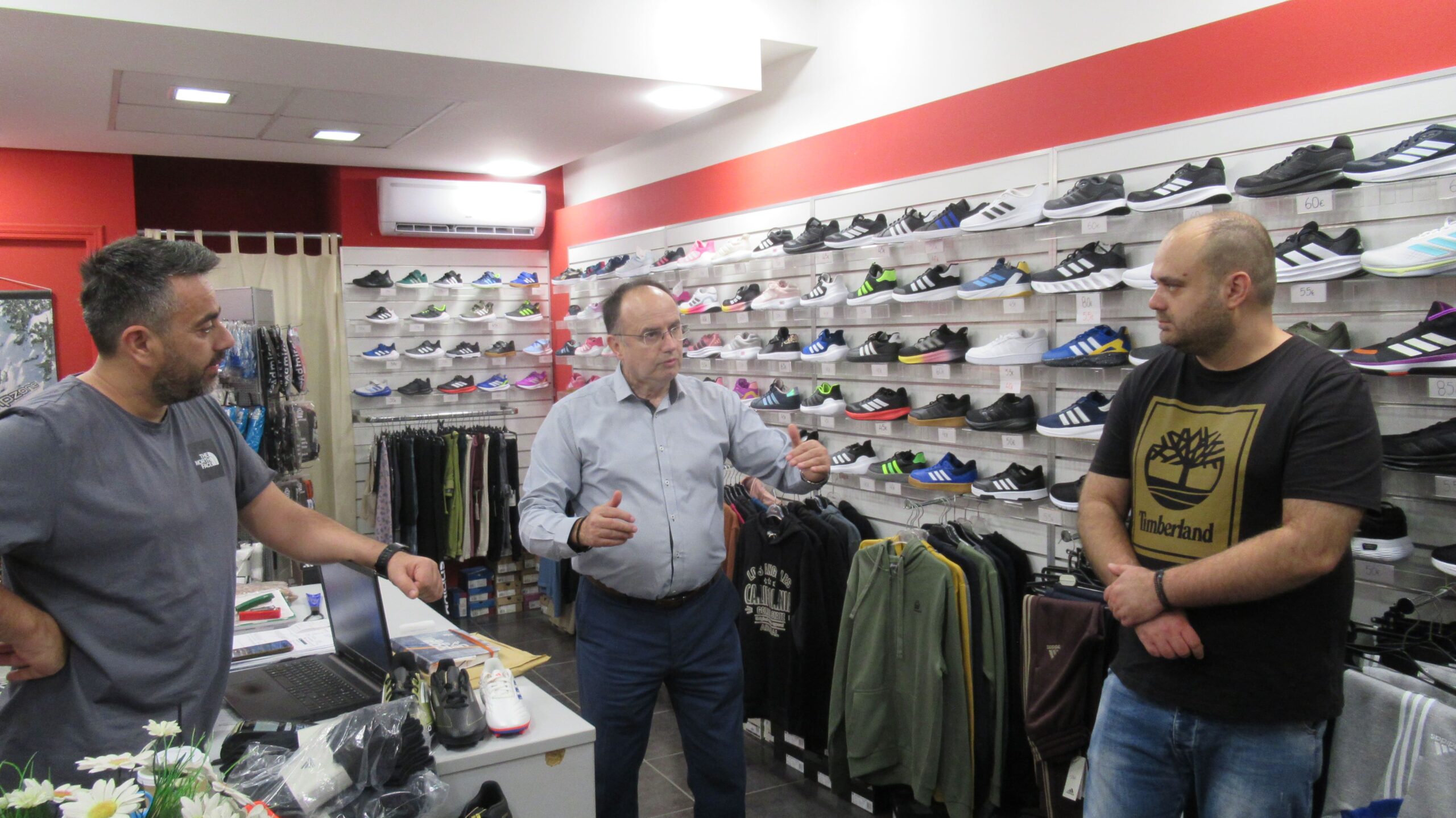 Όπως αναφέρεται σε ανακοίνωση, «συνοδευόμενος από τον υποψήφιο του συνδυασμού Χάρη Μπέκο επισκέφθηκε τον πεζόδρομο της Ερμού, συνομίλησε με επαγγελματίες στην κεντρική πλατεία, ενώ αντάλλαξε απόψεις με εκπροσώπους της επαγγελματικής κοινότητας στα καφέ της πόλης.