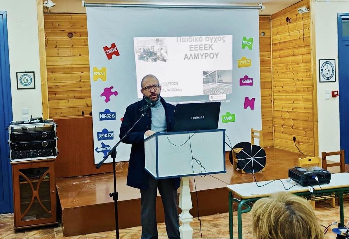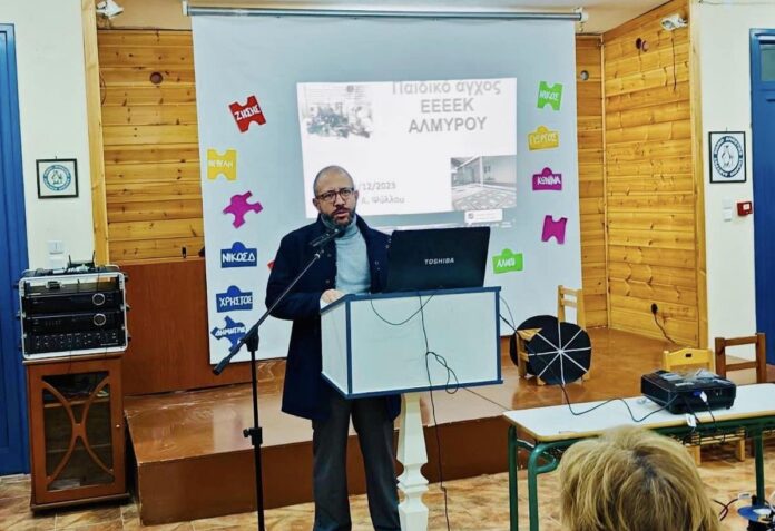 Ιδιαίτερη αναφορά έκανε και στο Ε.Ε.Ε.ΕΚ. Αλμυρού τονίζοντας ότι οι συνεχείς δράσεις και πρωτοβουλίες του αποτελούν αδιάψευστη μαρτυρία της σοβαρής δουλειάς που γίνεται στα Ειδικά Σχολεία. Πρόσθεσε ότι ως κοινωνία, ως χώρα έχουμε μόνο να κερδίσουμε από την ουσιαστική ένταξη των ατόμων με αναπηρία εστιάζοντας, όχι στην αναπηρία, αλλά στις ιδιαίτερες ικανότητες και δεξιότητές τους.