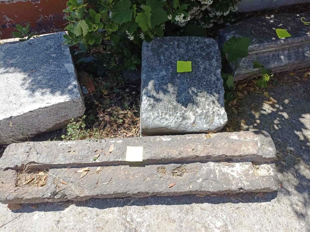 14 λίθινα αντικείμενα (αρχιτεκτονικά μέλη, βάση κ.α.),